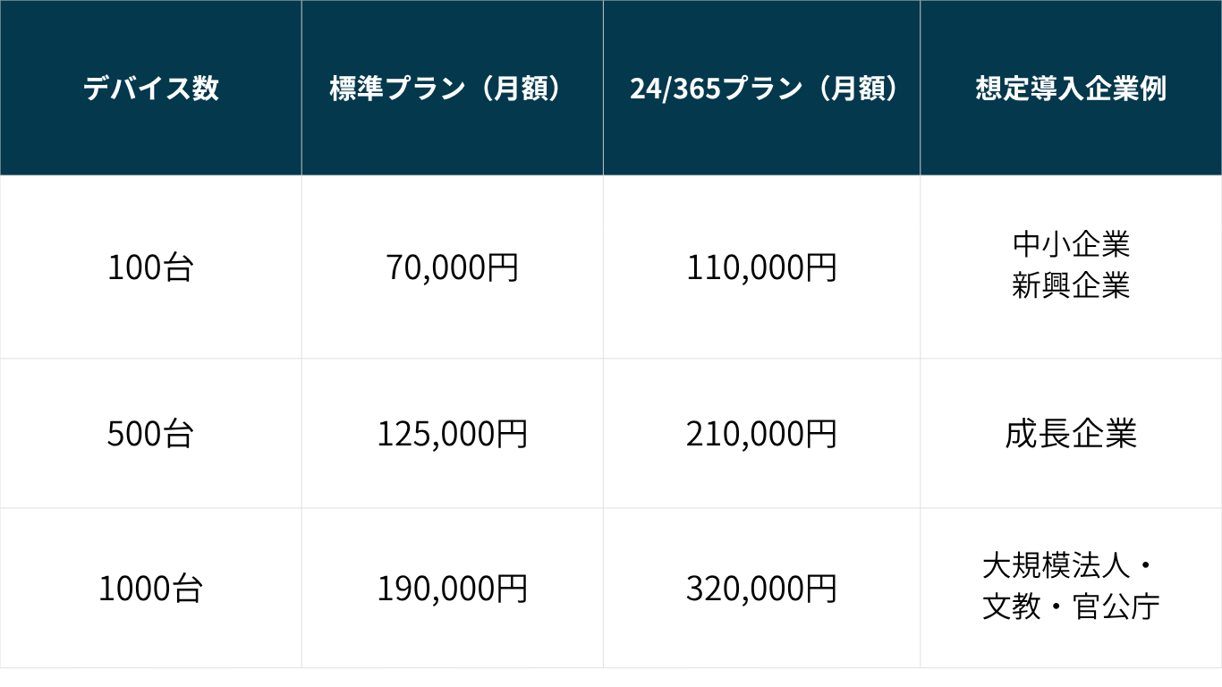※対象デバイス数に応じたボリュームディスカウントや、年間一括契約時のディスカウントもございます。