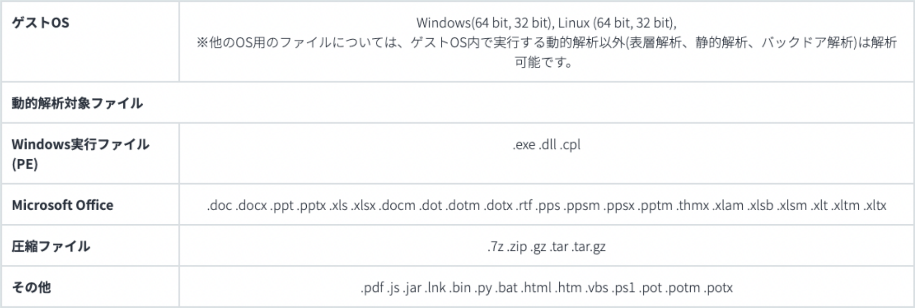 既知のマルウェアやその亜種とのハッシュ値/パターン認識/AIによる分類により解析