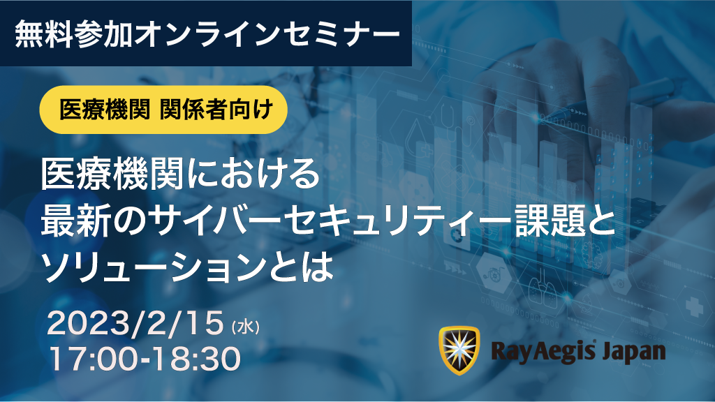 株式会社レイ・イージス・ジャパン(本社:東京都新宿区、代表取締役 青木 登、以下「レイ・イージス・ジャパン」)は、無料オンラインセミナー「医療機関における最新のサイバーセキュリティー課題とソリューションとは」を2月15日(水)17:00より開催いたします。