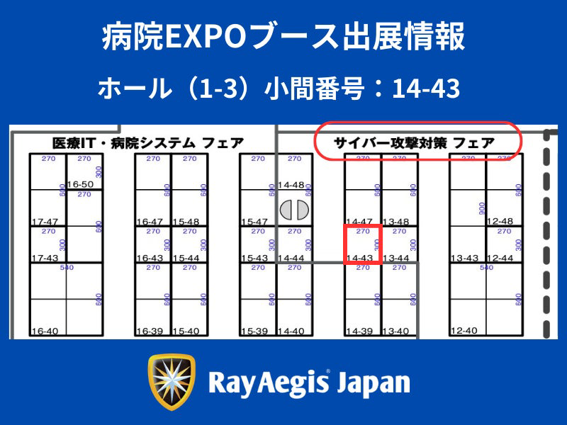 株式会社レイ・イージス・ジャパン(本社:東京都新宿区、代表取締役 ⻘⽊ 登、以下「レイ・イージス・ジャパン」)は、病院EXPO「サイバー攻撃対策フェア」に出展いたします。イベント開催期間は、2023年10⽉11⽇(⽔)から10⽉13⽇(⾦)まで、幕張メッセで開催されます。