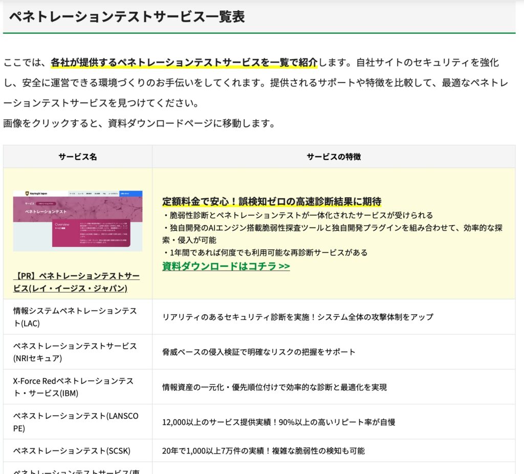 ペネトレーションテストに関する掲載先サイト情報はこちらです。